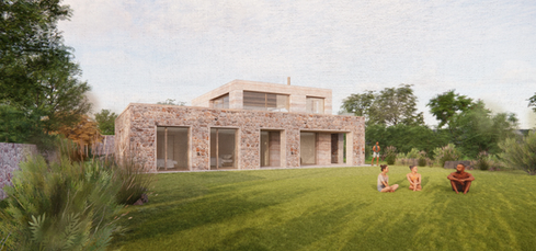 The site known as “Wishing Well” is located in the Coastal National Park in St. Ouen, Jersey. Positioned on the beach front with views across the bay, this contemporary family home uses rugged local granite and SRE rammed earth construction to embed the building in its natural context and create a symbiotic relationship between the land and the sea. A central plan arrangement focusses the internal orientation to create a visual connection though the building, whilst living areas and a shaded dining pavilion on first floor celebrate the views across the landscape. As the first SRE project on the island, Fieldwork have led a rigid R+D process to coordinate and explore the best material mixture and construction process to achieve beautiful results. Careful contemporary detailing to the granite wall and stonework surround the SRE structure and provide a durable facade to resist the elements.